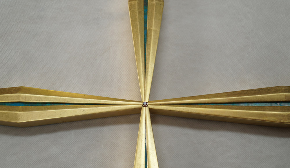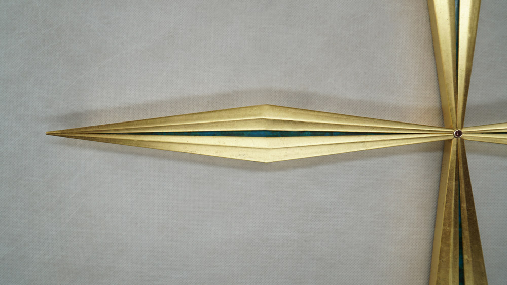 Meticulously handcrafted using time-honoured techniques, Axis Mundi combines rich textures and reflective surfaces, creating an ever-changing interplay of light and shadow. Mounted on the wall, this sculpture serves as a visual focal point, its luminous presence inviting contemplation and awe.