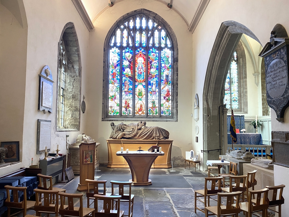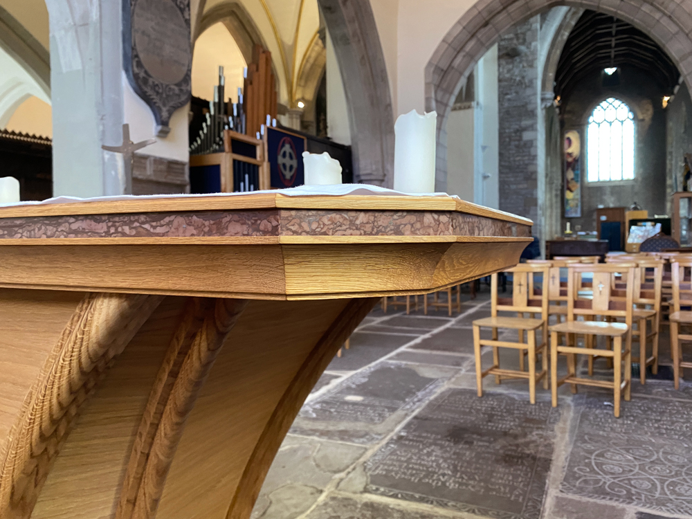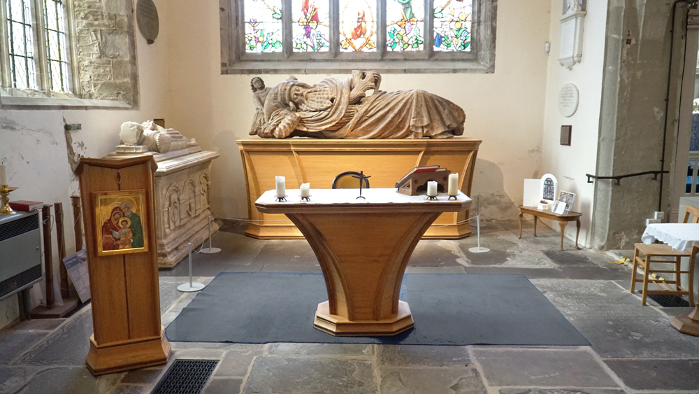 A plinth for a rare 15th Century carving of King Jesse along with an altar for a chapel at St. Mary’s in Abergavenny, Wales.