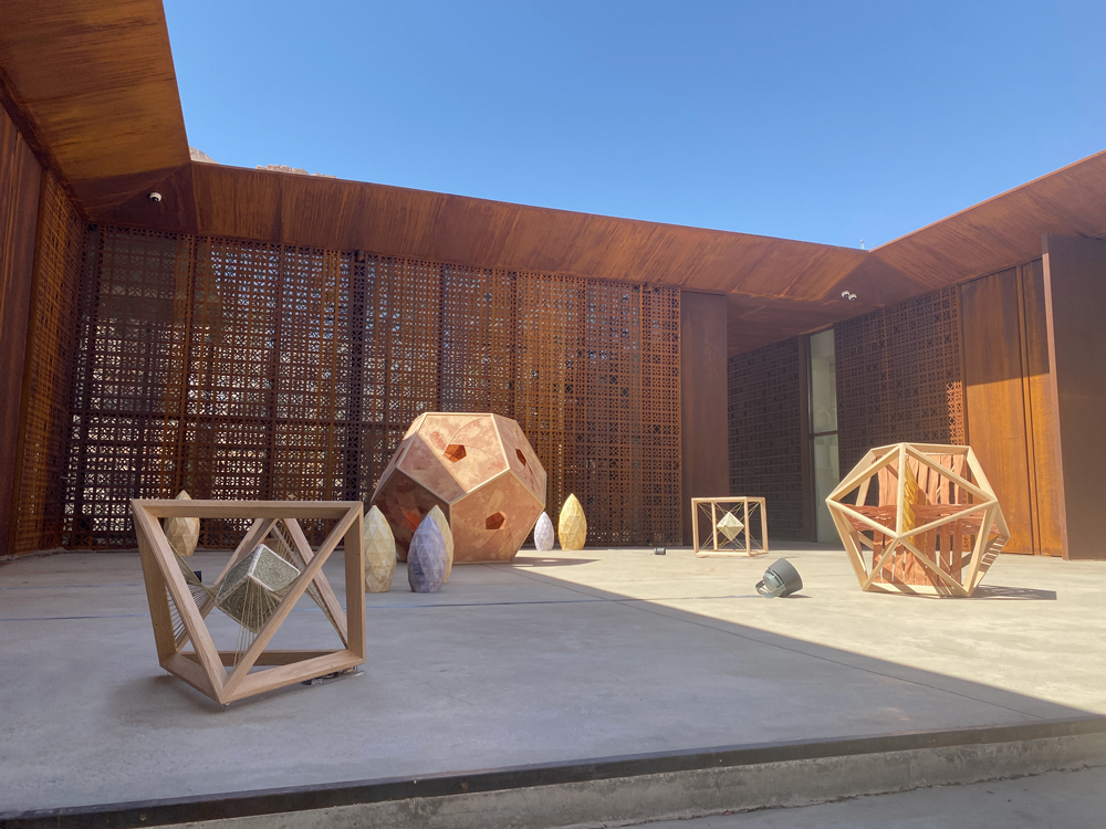 Together with my wife, Aline Marion, I was invited to produce a large scale installation in the courtyard of Al Ula’s new Design Gallery. Over a period of five weeks we created a set of life-size Platonic solids, and an array of spiraling flower-like forms und the title "After the Rain - A Geometric Garden".